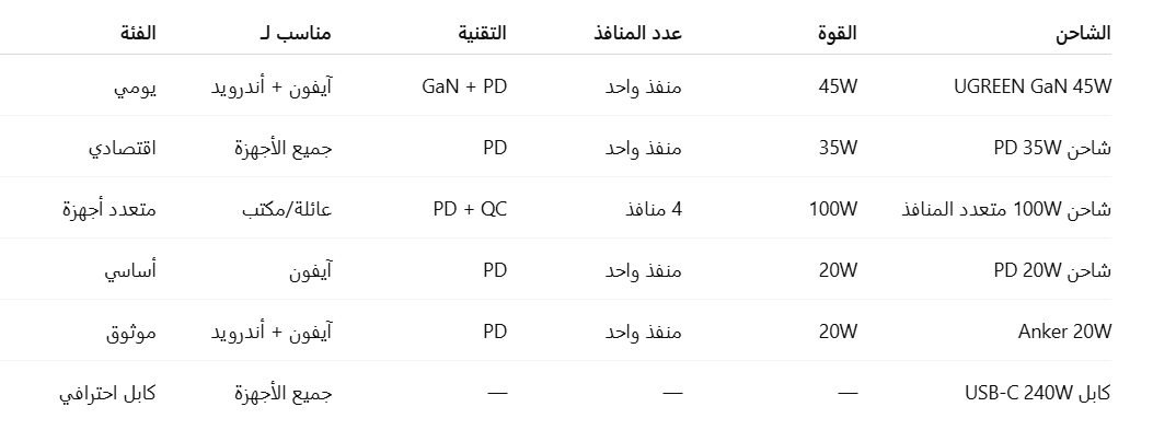 1) اختر شاحن USB-C يدعم Power Delivery (PD)